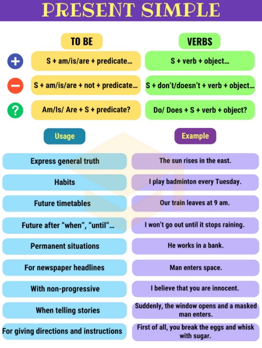 - English Club.com – basic multiple-choice quiz for Present simple http://www.englishclub.com/grammar/verb-tenses_present_quiz.htm