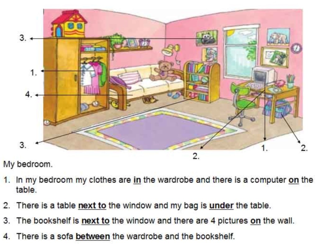 Prepositions of place describe the position of a person or a thing in relation to another person or thing.