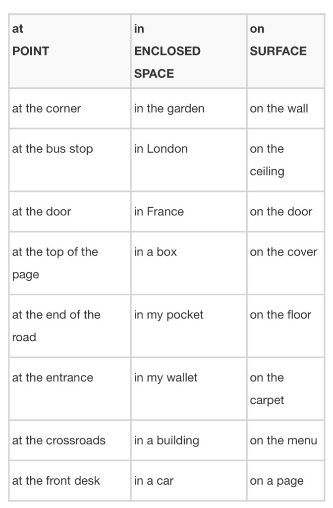 Prepositions of Place